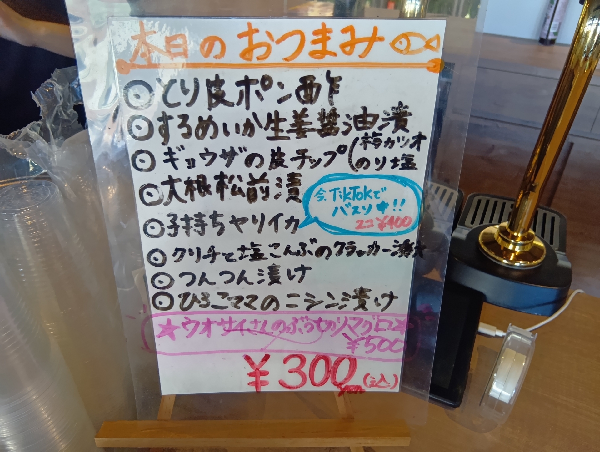 通常のおつまみに加えて、「本日のおつまみ」として特別メニューもあります。