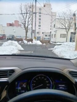 ・市街地で「鹿のご一行様」に行く手を阻まれる