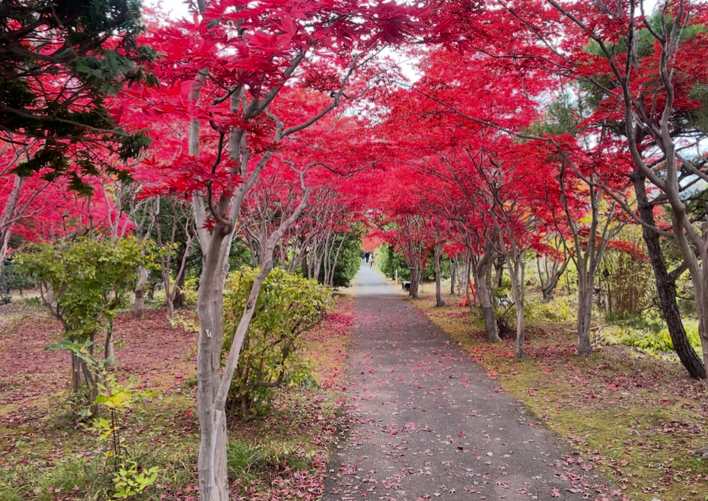 植樹された木々による紅葉ですが この赤は目に焼き付く
