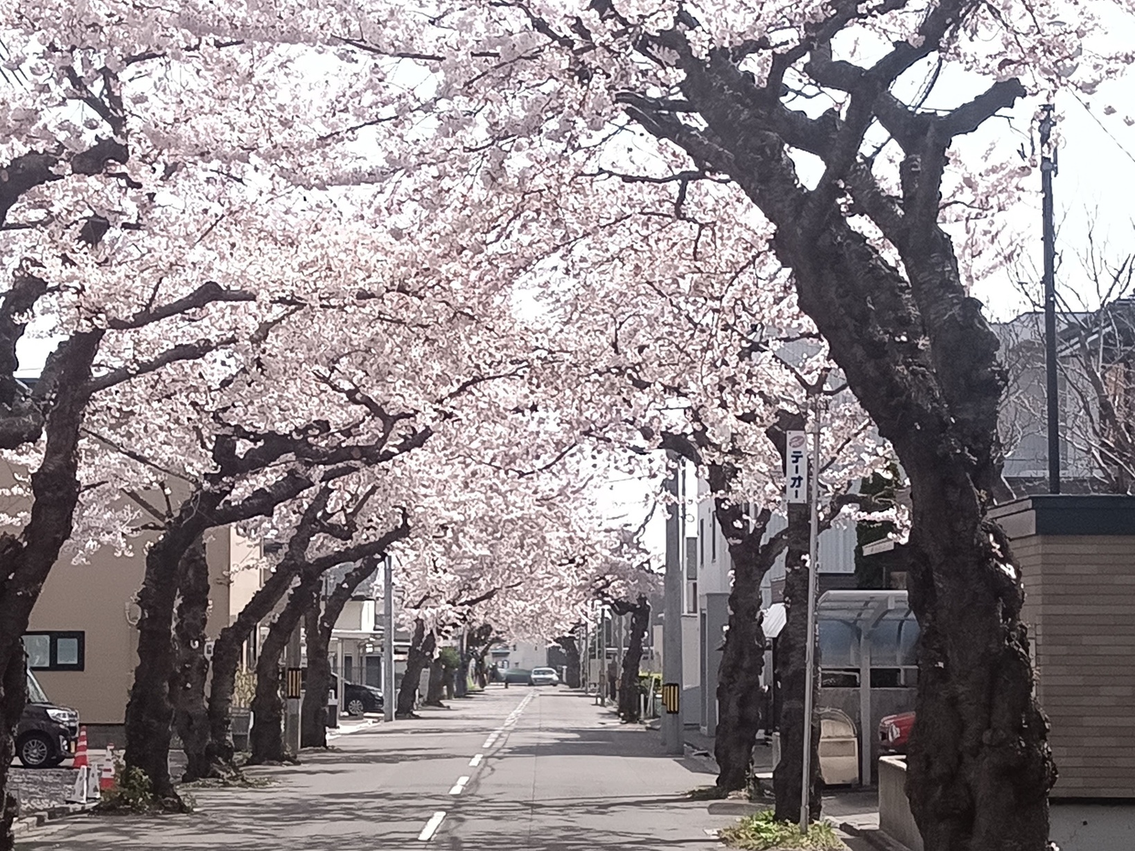3枚目は通称「桜が丘通」の桜並木です。800mの道路沿いに100本の桜が咲いて見事な