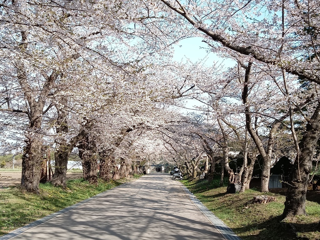 アーチを描いています。普通の狭い道路の両端に桜並木が続いていて圧倒されます。
