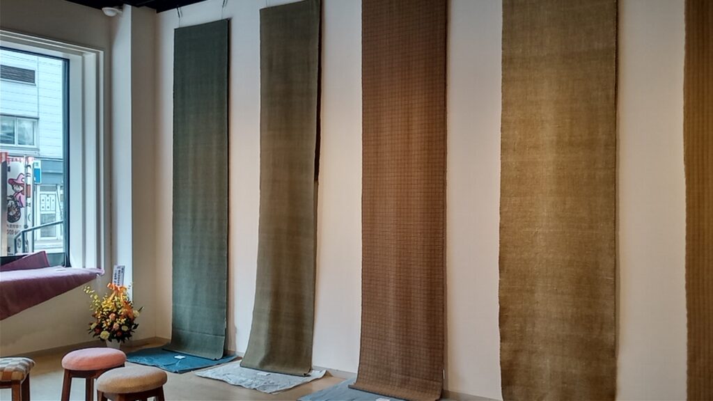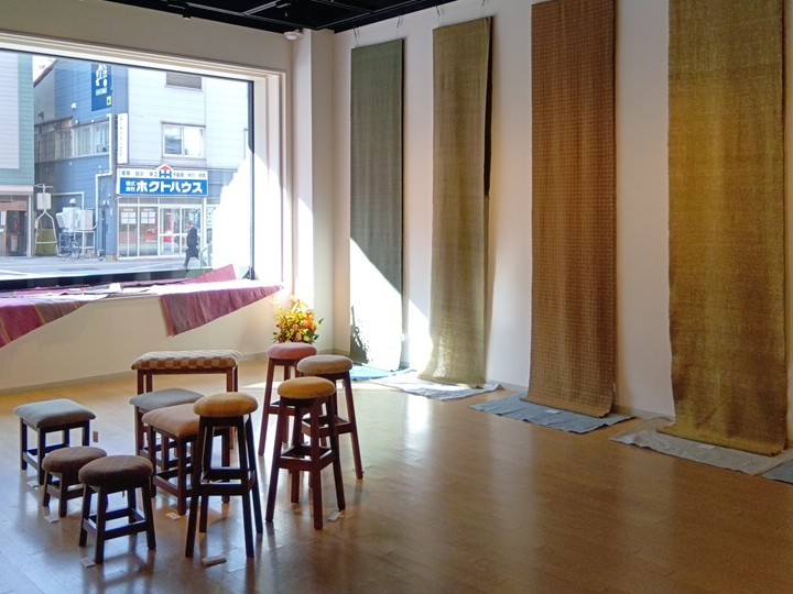 草木で染めた道産羊毛の原毛を手で紡ぎ、手織りをして毛織物制作を行う「きりぎりすの会」メンバー7人による作品展です。
