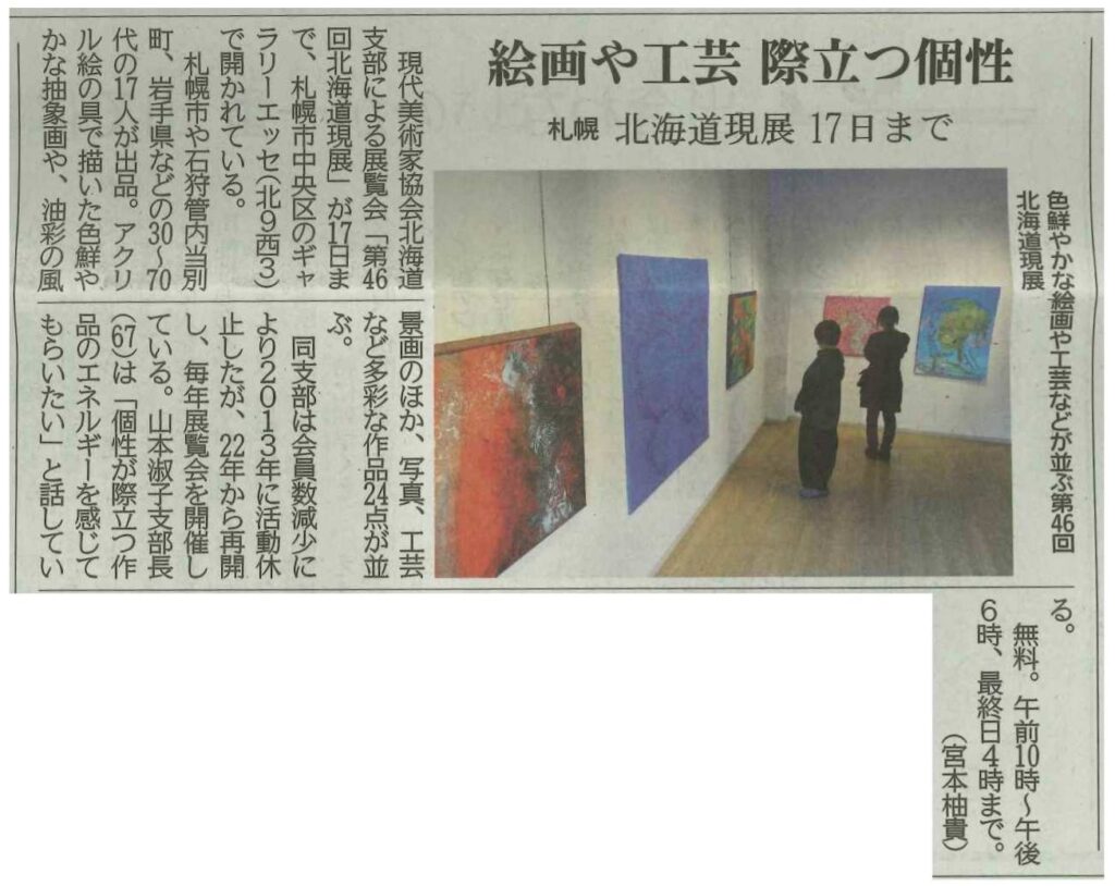 11月14日(金)北海道新聞に「第46回北海道現展」が紹介されました。