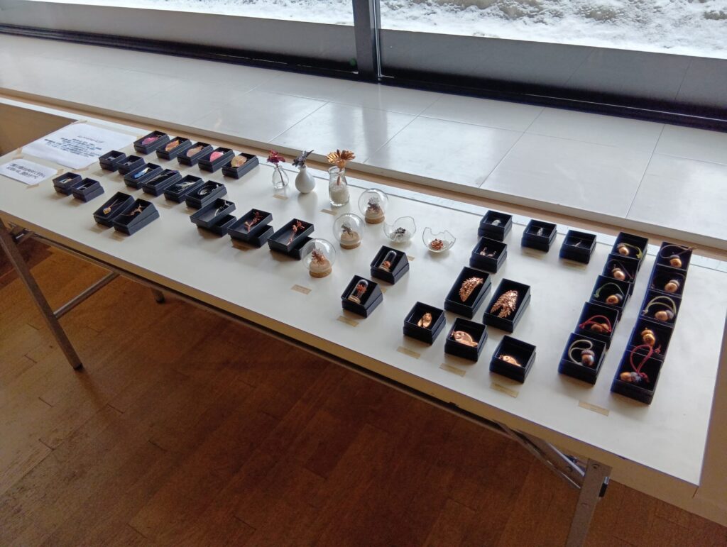 植物や鉱物などの表面に電気メッキをかけて制作されるエレクトロフォーミングの作品も展示中。本物の葉や花などの自然の記憶が閉じ込められています。