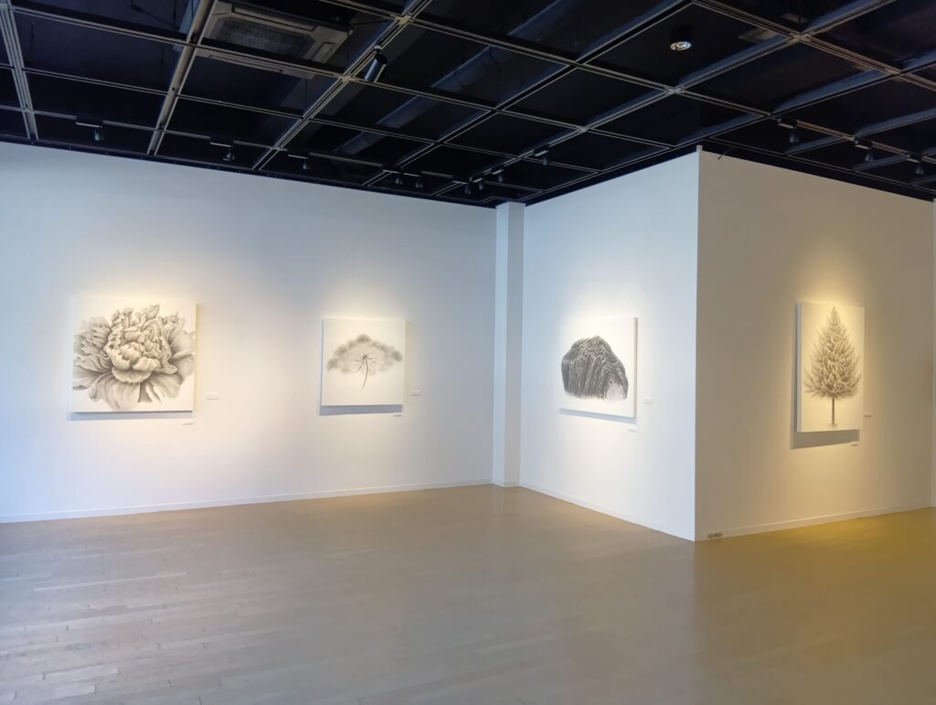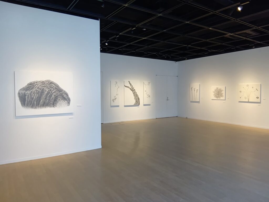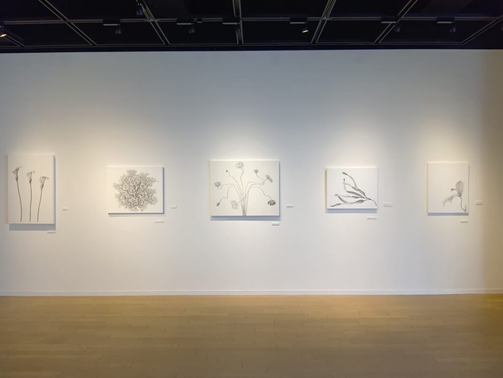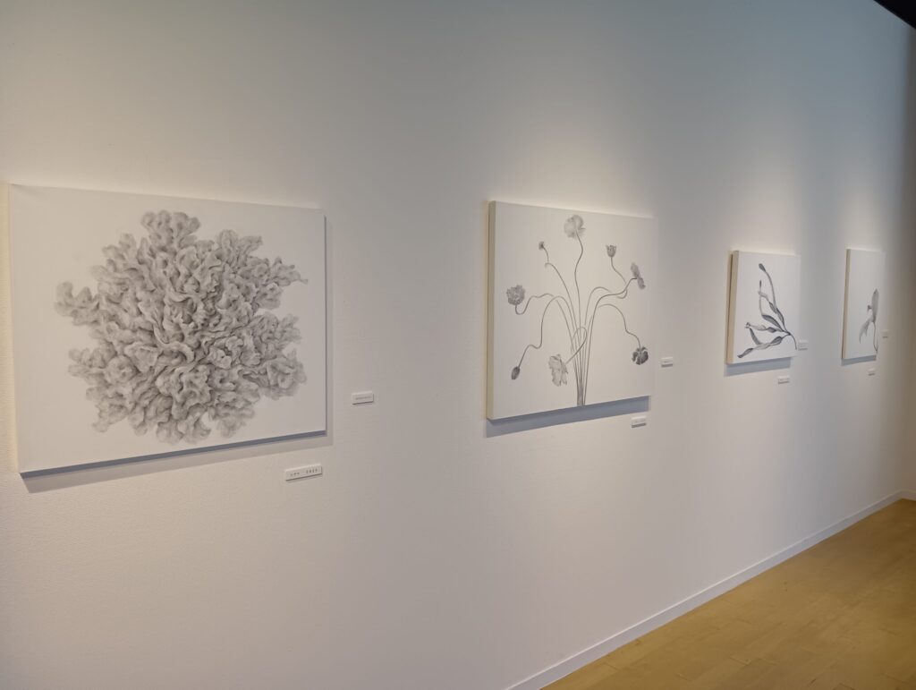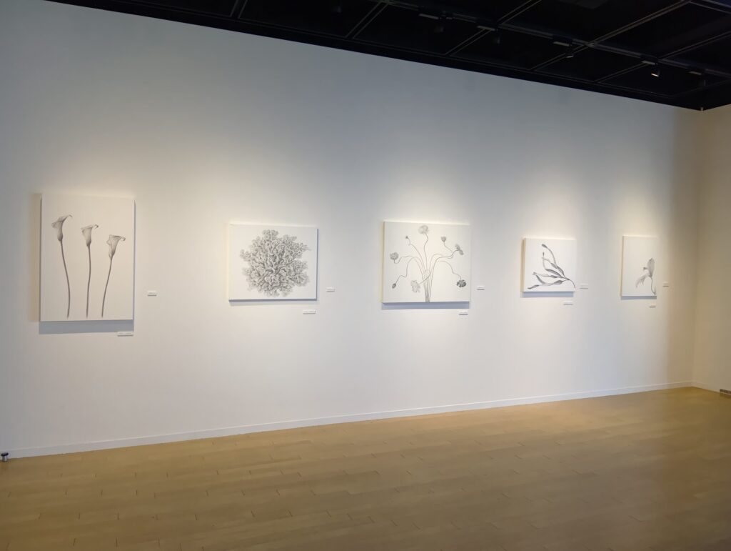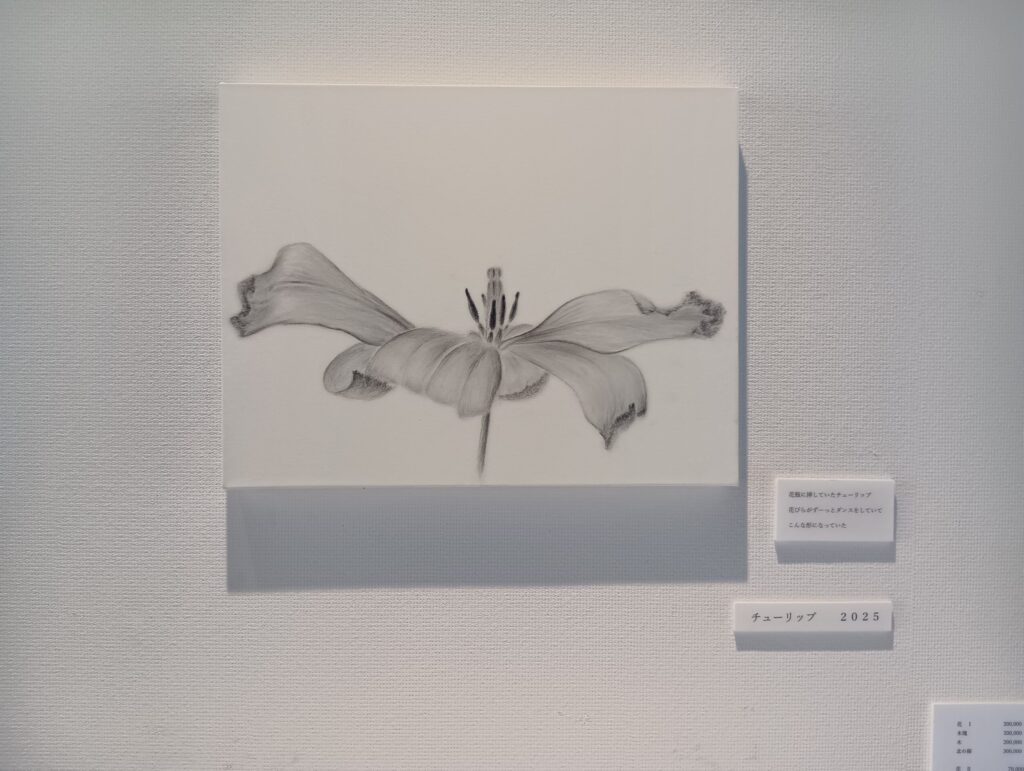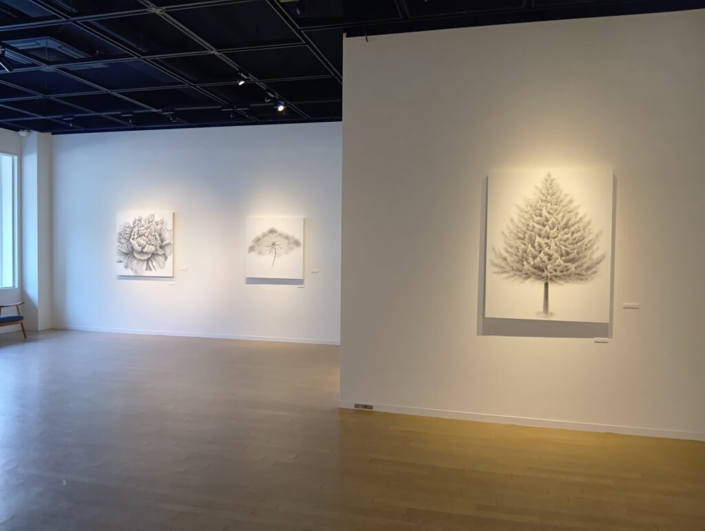 札幌在住の画家、狩野立子さんの個展です。花や木などの植物を、紙の白と鉛筆による黒の濃淡だけで描いています。