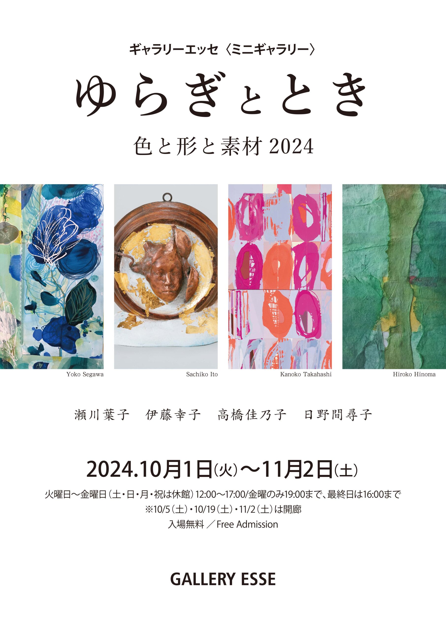 4人の表現方法は違いますが、今を生きる気持ちを、形、色、素材に託して表現しています。