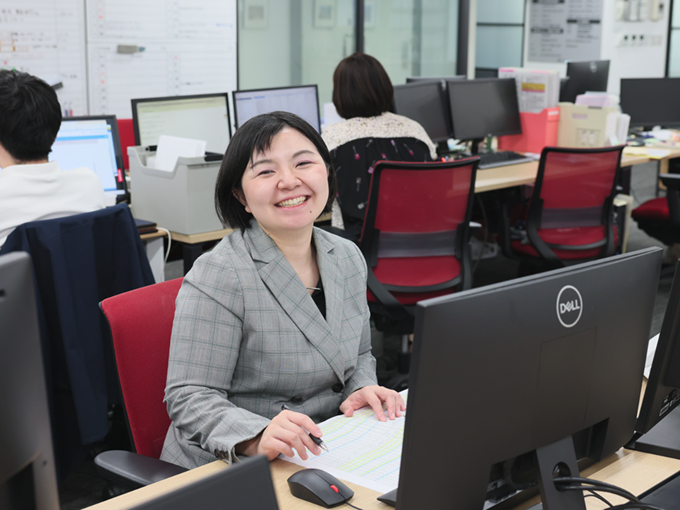 入社後は総務部一筋です。伝票処理や支払い手配などの経理全般から、人事・研修の準備、福利厚生の整備、広告の手配など、会社の運営に関わる裏方として、さまざまな業務を担っています。また、業務のシステム化、電子化にも取り組んでいます。