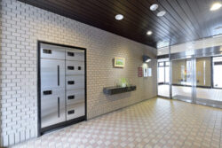 エントランスホール広いエントランスにはエレベーター、駐車場への出入り口と非常階段への出入り口があります。