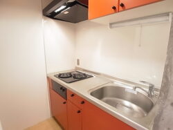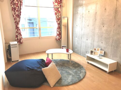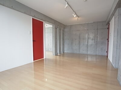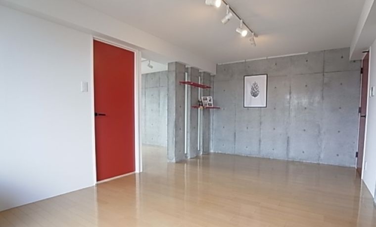 1Kだけでなく、2LDKのお部屋もあり赤い扉がアクセントになっており、スポットライトの明かりが穏やかな空間を演出します。