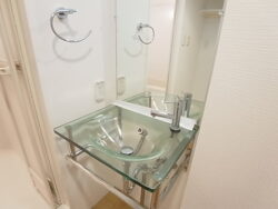 洗面台デザイナーズマンションらしいガラスの洗面台