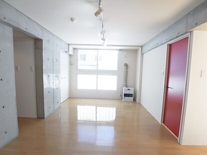 1Kだけでなく、2LDKのお部屋もあり赤い扉がアクセントになっており、スポットライトの明かりが穏やかな空間を演出します。