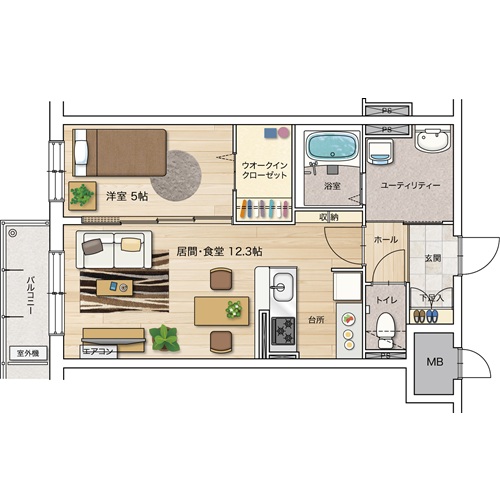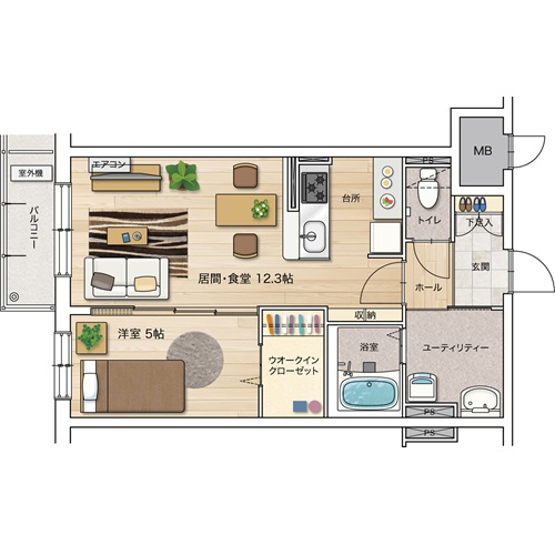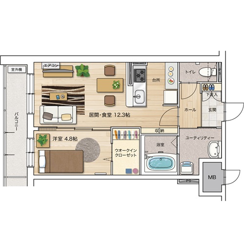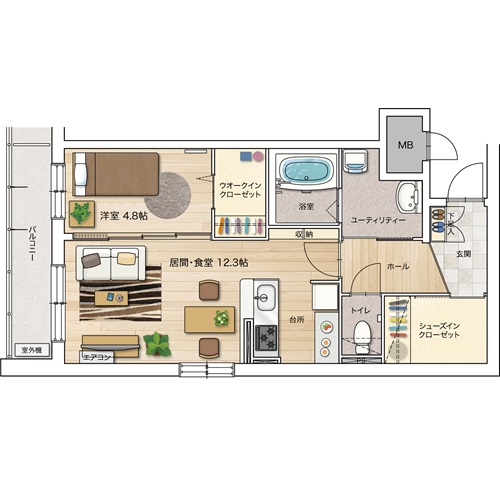 余裕のある間取りや収納スペースで、シングルから2人住まいまで、
