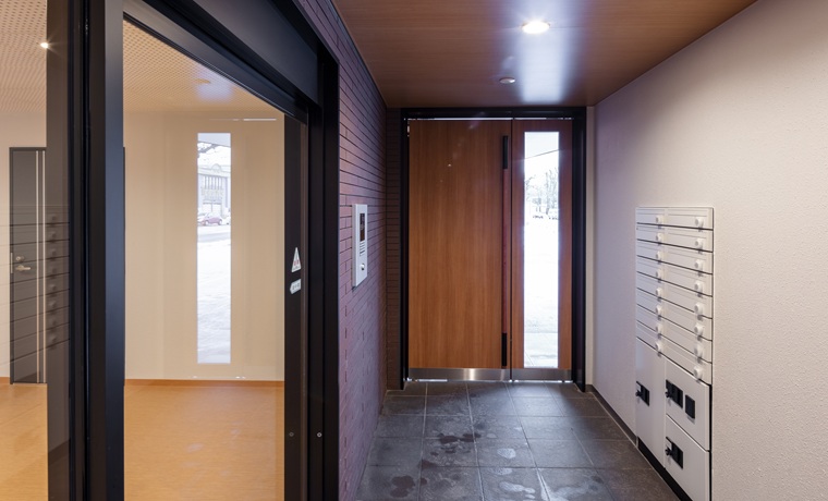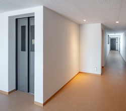 エレベーターホール4階建ながらもエレベーターを採用。各階のエレベーターホールには大きな窓が設置されており、開放的な空間です。