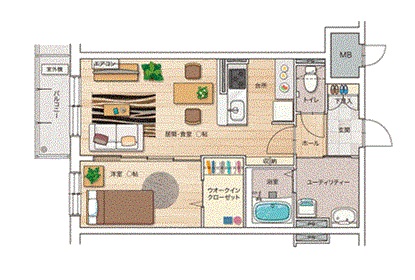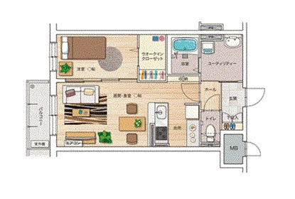 余裕のある間取りや収納スペースで、シングルから2人住まいまで、