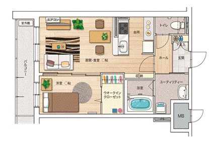 冷暖房エアコン暑い夏にも対応できるよう、冷暖房エアコンを設置。通年快適な温度で過ごすことができます。