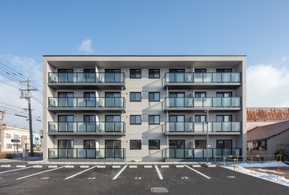 良好な眺望全戸南西向きで日が差し込みます。最上階は函館山を望む良好な眺望。1階は人の目線が気にならないよう、植栽を配置。
