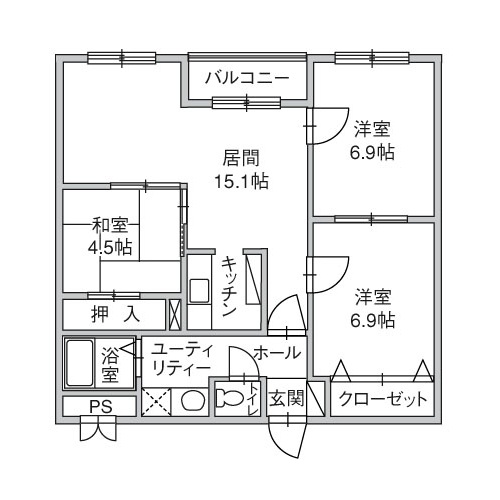 - 2LDK(30戸)、3LDK(4戸)、1SLDK(1戸)