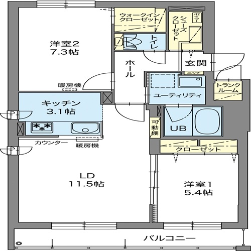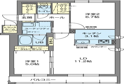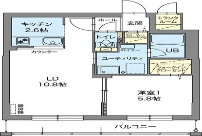1LDKを中心に、全戸南向き・天井高2.4m以上となっており、ゆったりと開放感のある3タイプの間取りをご用意しました。全洋室にクローゼットを備え、全戸分のトランクルームも完備するなど、収納面も充実した使い勝手の良い住空間をご提供します。