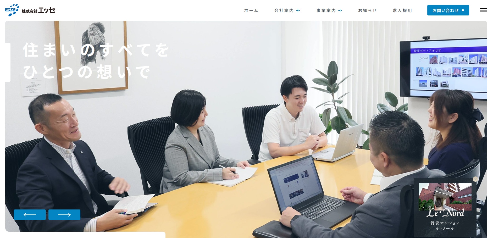 ホームページでは、当社の会社案内、事業案内、採用情報、賃貸マンション「ル・ノール」シリーズのご案内をしております。