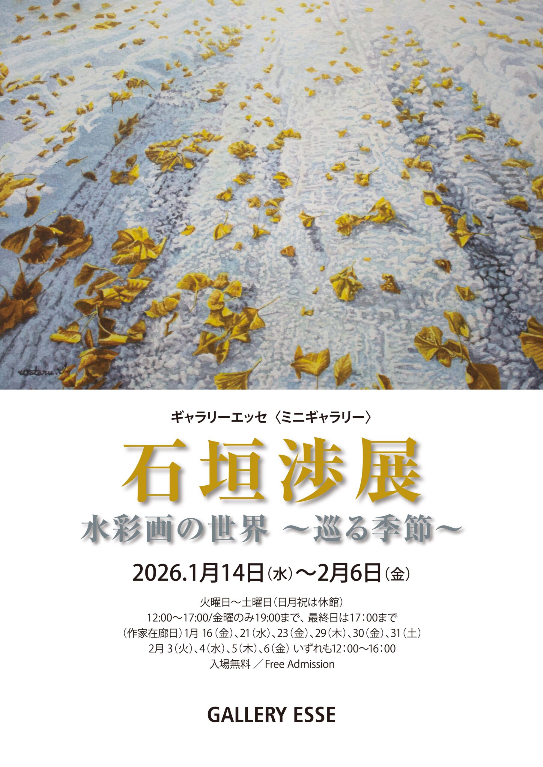 『石垣渉展 水彩画の世界 ~巡る季節~』本日より開催します